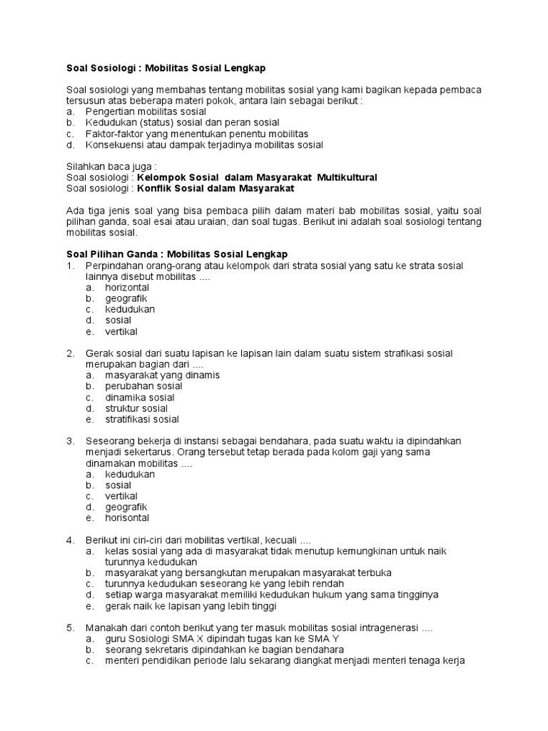 Web Contoh soal mobilitas sosial dan kunci jawaban.
